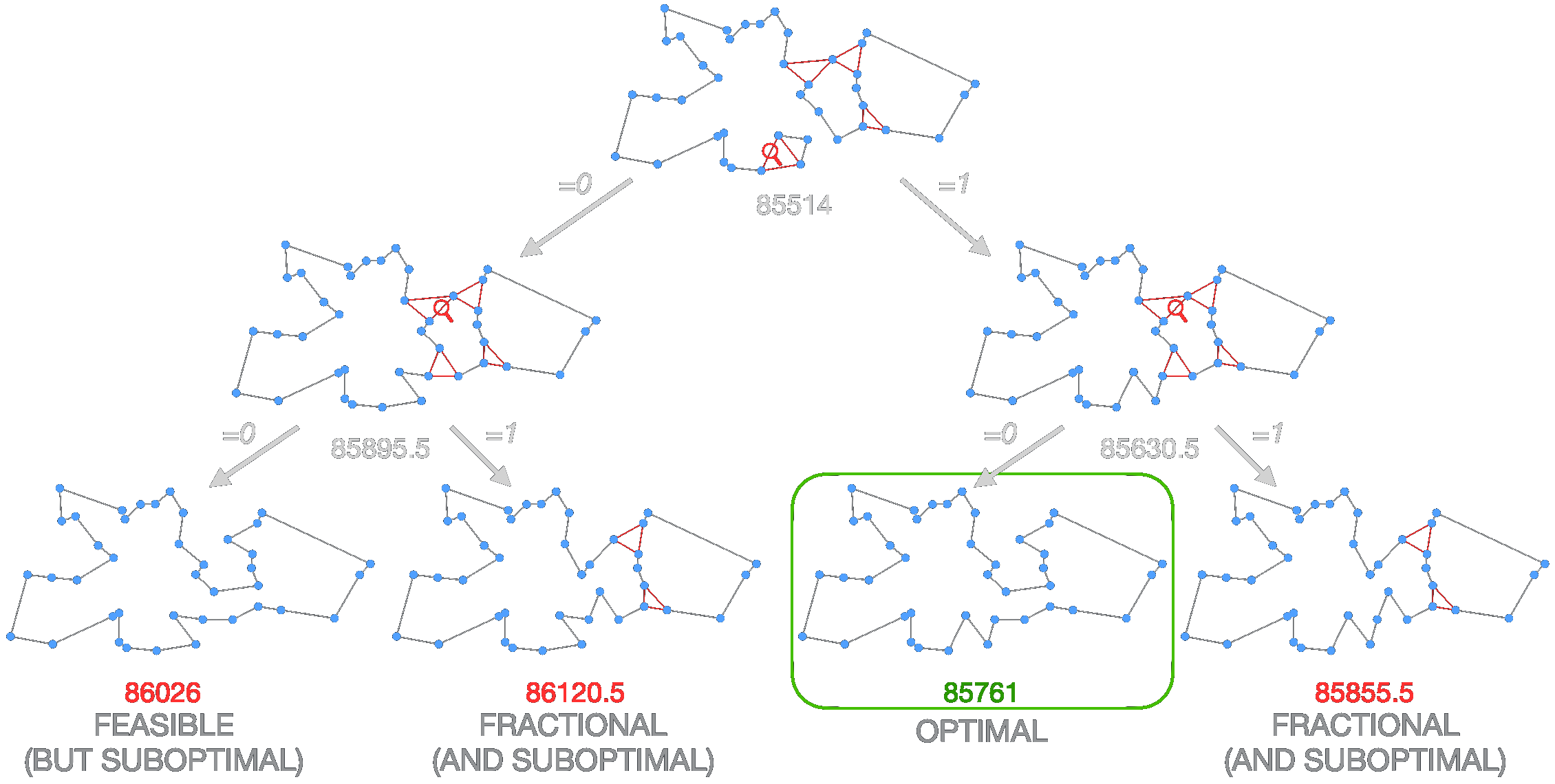 relax → bound → branch → prune